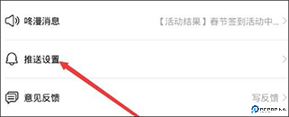 2、在【我的】界面中,有个【推送设置】,点击并进入。