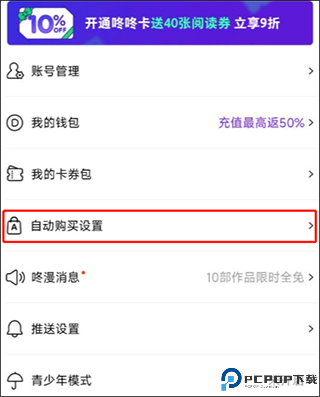 2、选择屏幕【自动购买设置】,点击进入即可。