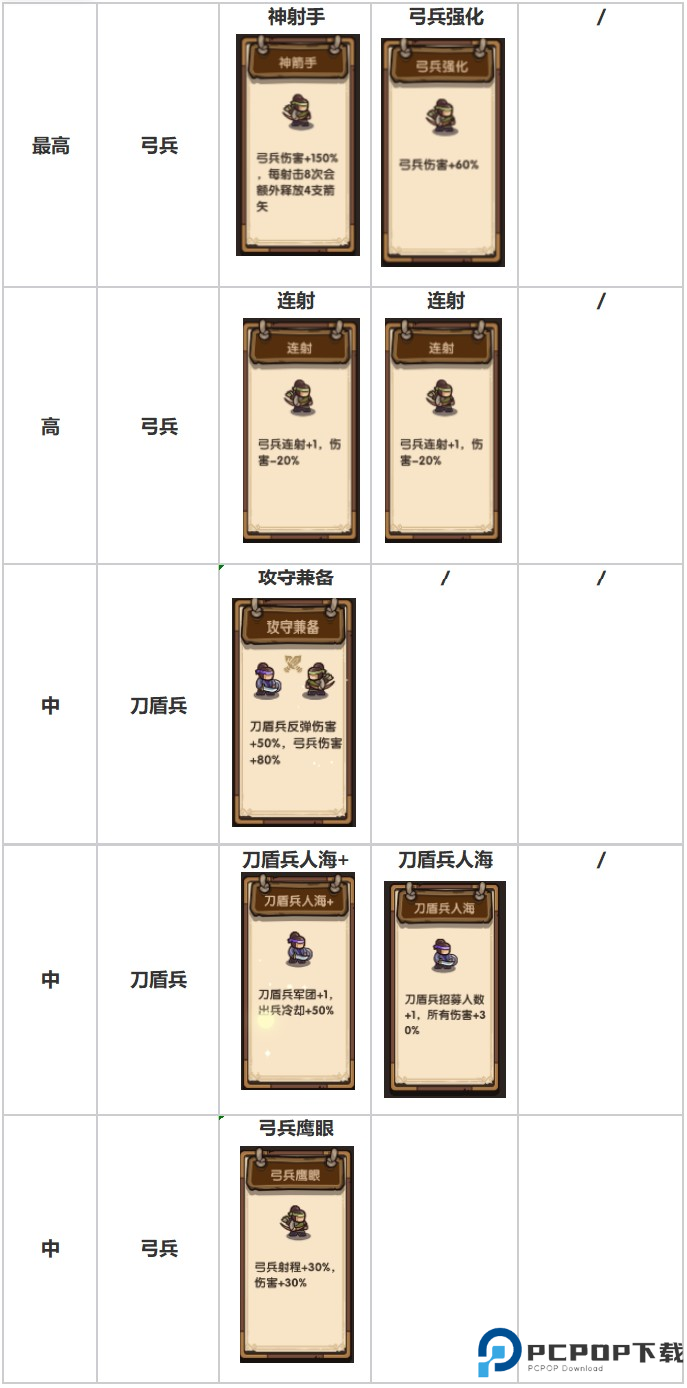 兵营等级推荐:弓兵6级,盾兵4级以上