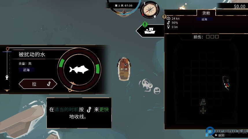 白天钓鱼为主:进入游戏后,白天是最安全的时间段,专注捕鱼,积累金钱并提升船只性能。