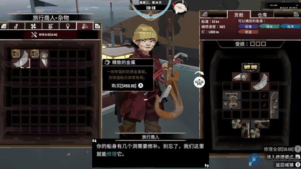记得修船:初期的船只性能较差,捕鱼时难免碰到暗礁或意外受损,及时回港修理船只,避免船体破损导致货物丢失。