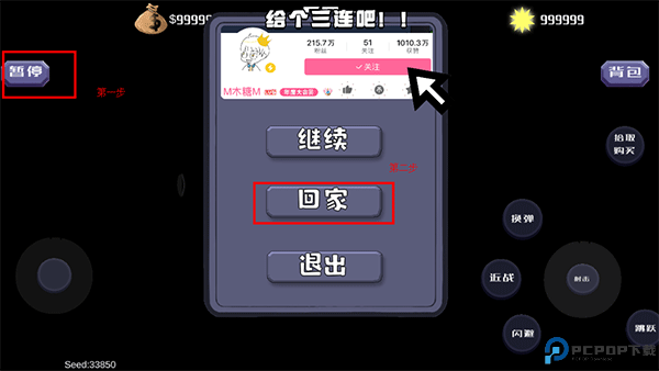 2、只有先找到一个安全的环境,附近没有僵尸出现,然后点击左上角的“暂停”按钮,选择“回家”,才可以安全回家哦。