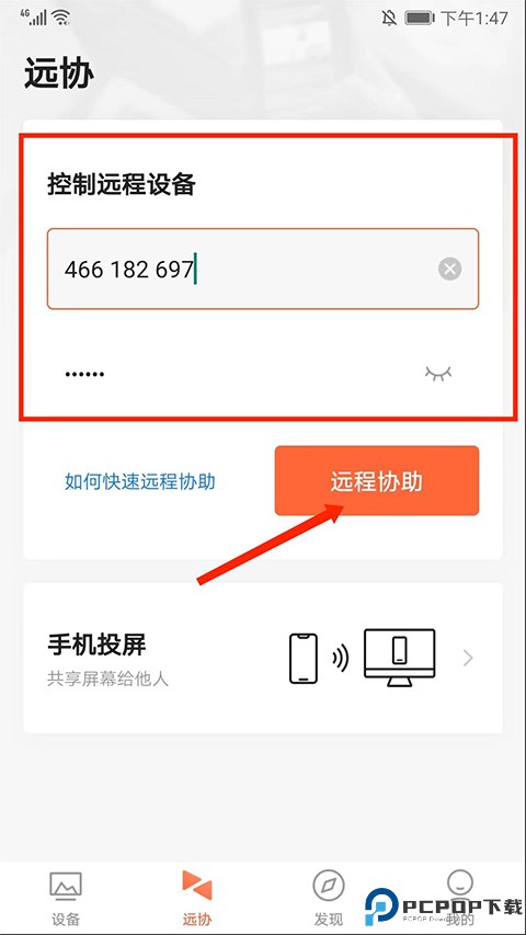 4、依次输入【伙伴识别码】和【验证码】后点击【远程协助】选项,