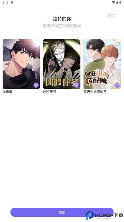 2、接着选择感兴趣的漫画类型,也可以跳过;