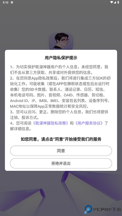 1、在本站下载后打开进入软件,点击同意并接受相关隐私服务;