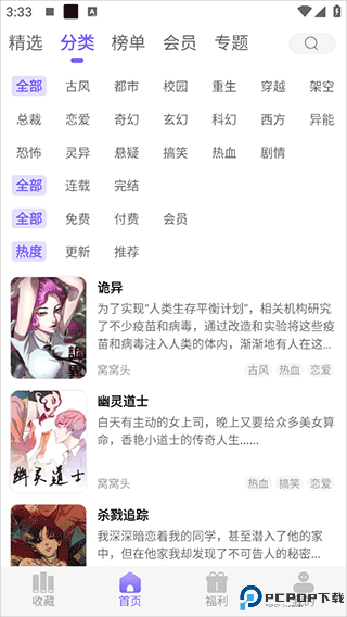 2、分类搜索更加快速找到自己喜爱的漫画资源