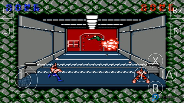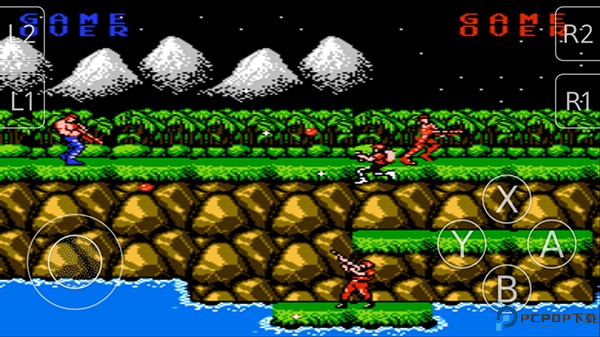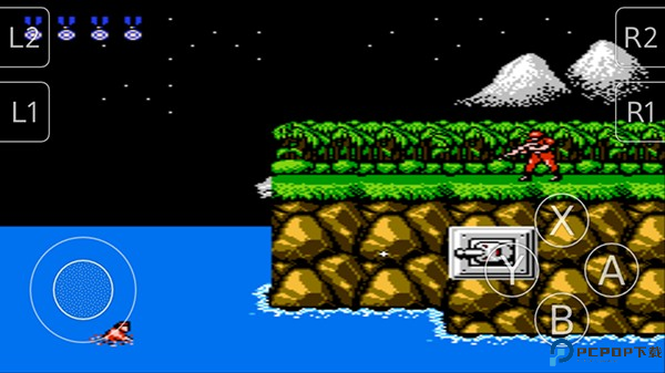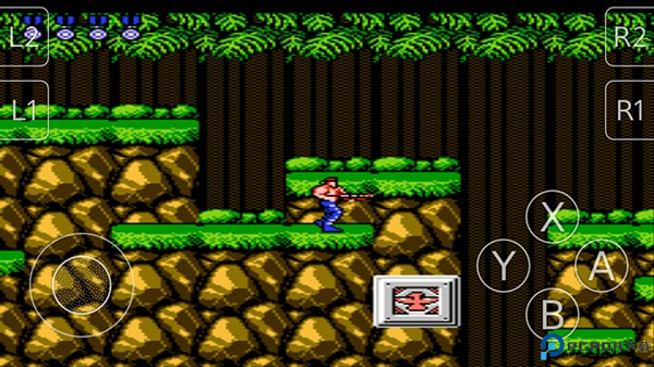 2、左下角控制角色移动,右侧“X”“Y”是开火“A”“B”跳跃,用来攻击和躲避子弹,可以灵活使用。