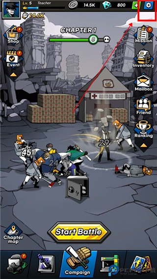 1、打开首尔启示录官方版,先根据指导度过新手教程,可以自由操作后点击右上角的【设置】,