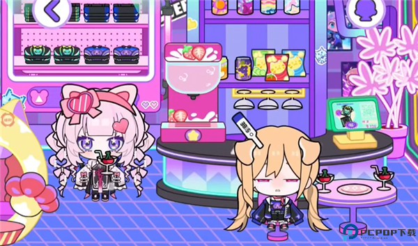 3、与游戏中的物品和角色进行互动,喝饮料、享受美食,还可以个性化装扮,增加了游戏的乐趣。