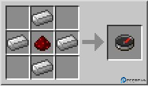7、指南针。四个铁锭和一个红石就能合成一个指南针。在查看指南针时,红石指针指向即为出生点方向(或者床的方向),将指南针拿在手里可根据指针回家。
