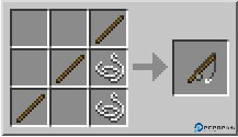 5、钓鱼竿。钓鱼竿的制作材料非常简单,只需要3根木棒以及2个蛛丝。用它可以获得各种鱼类、附魔书和其他杂物。