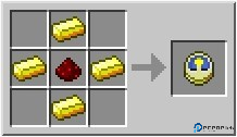 8、钟。由一个红石粉和四个金锭来合成出一个钟。钟会旋转来符合太阳以及月亮在天空中的位置,现实游戏中的时间。但是如果在下界或者末地时,钟都不能正常显示时间。