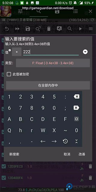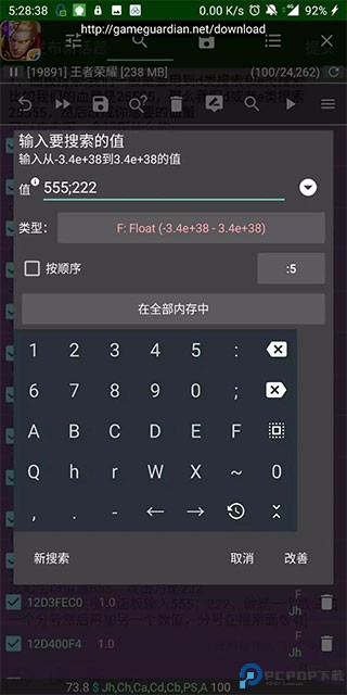 当同时存在两个目标值,如生命值为 555,攻击为222,可使用“555;222”形式在面板中进行联合搜索,提升查找效率,避免数值过多导致数据混乱。