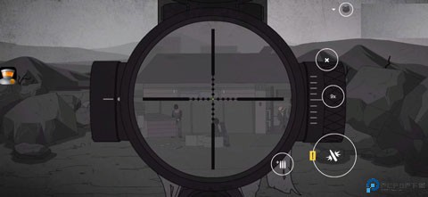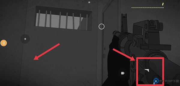 4、在游戏中通过左边屏幕控制的瞄准点,右边按钮为攻击