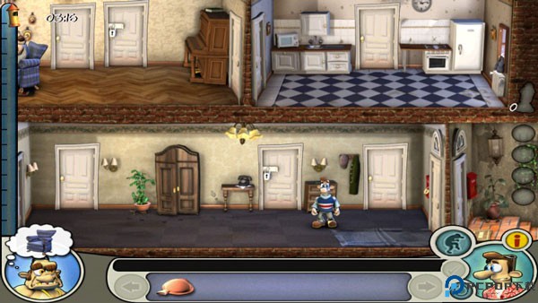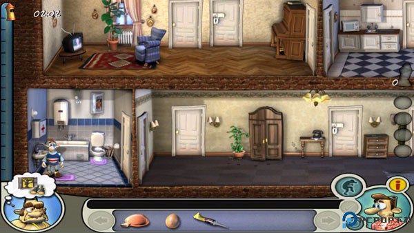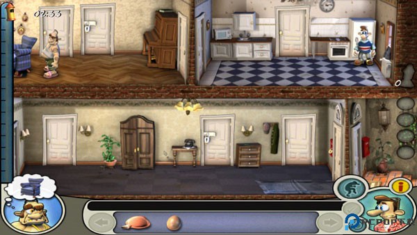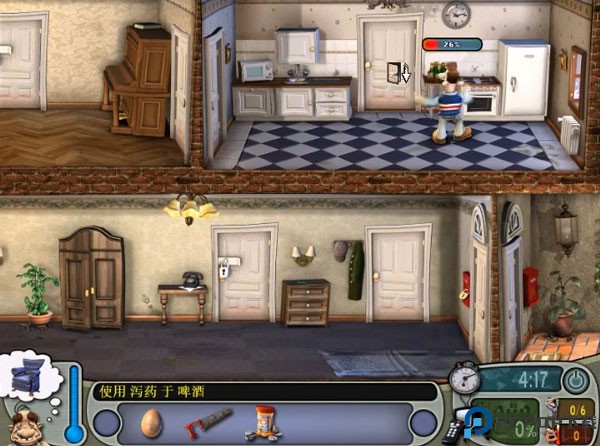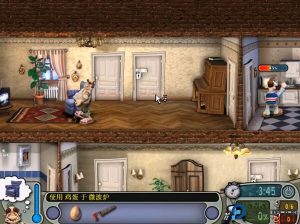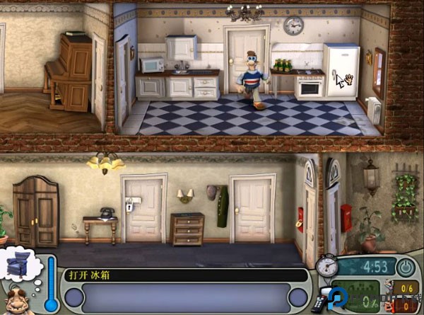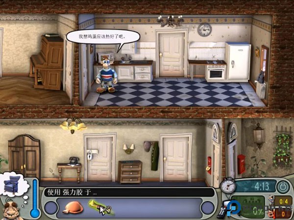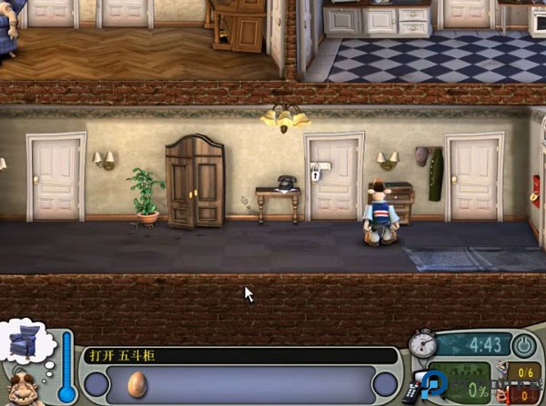 接下来从客厅的门进入到二层厨房,当然是boss已经下楼了,迅速到冰箱里拿鸡蛋,然后躲到左侧客厅的门里,时间刚刚好,boss上楼来,等着,等boss下楼然后迅速将鸡蛋放在微波炉里,再次躲到门后边。