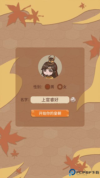 1、开局时选择你的昵称与性别,正式登基成为一国之君。