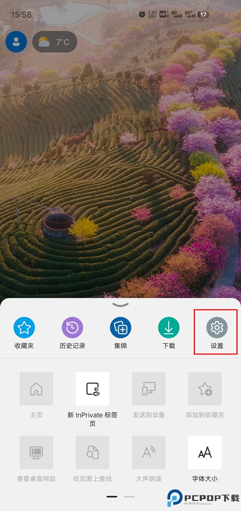 1、首先打开Edge浏览器安卓版,点击底部中间的按钮打开菜单;