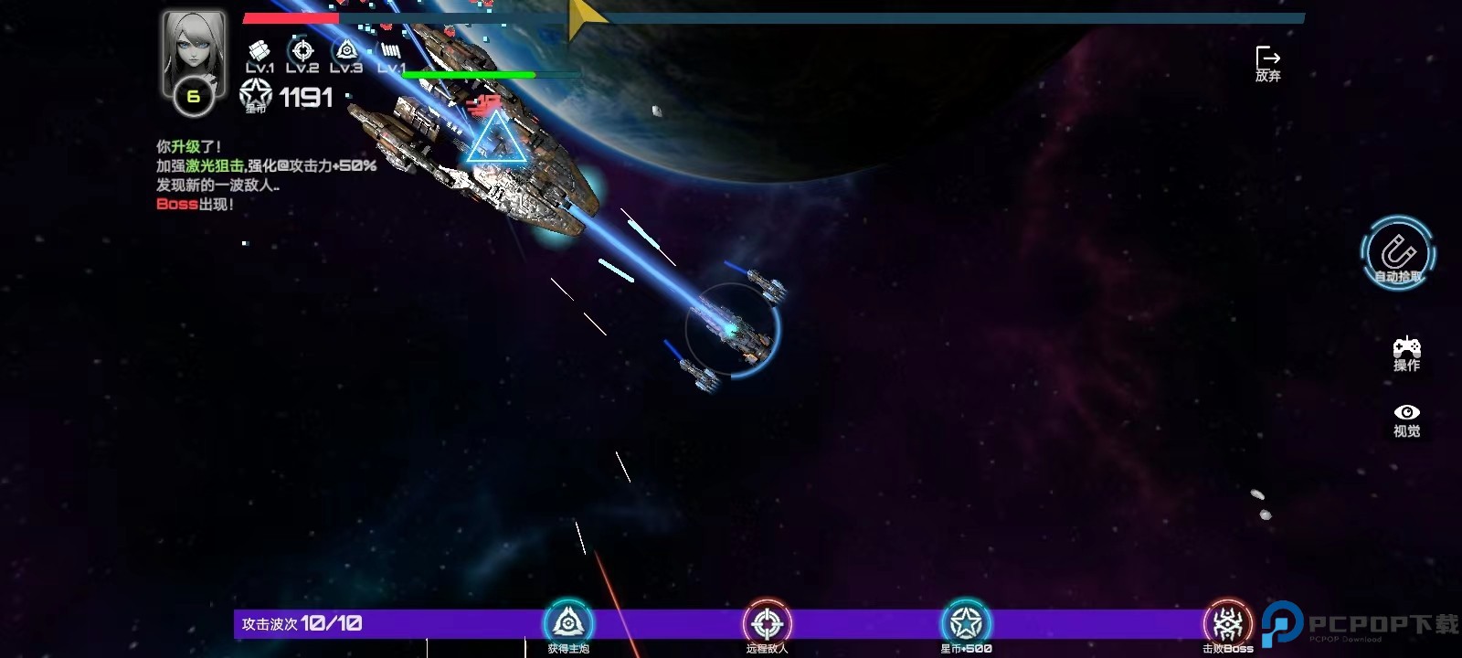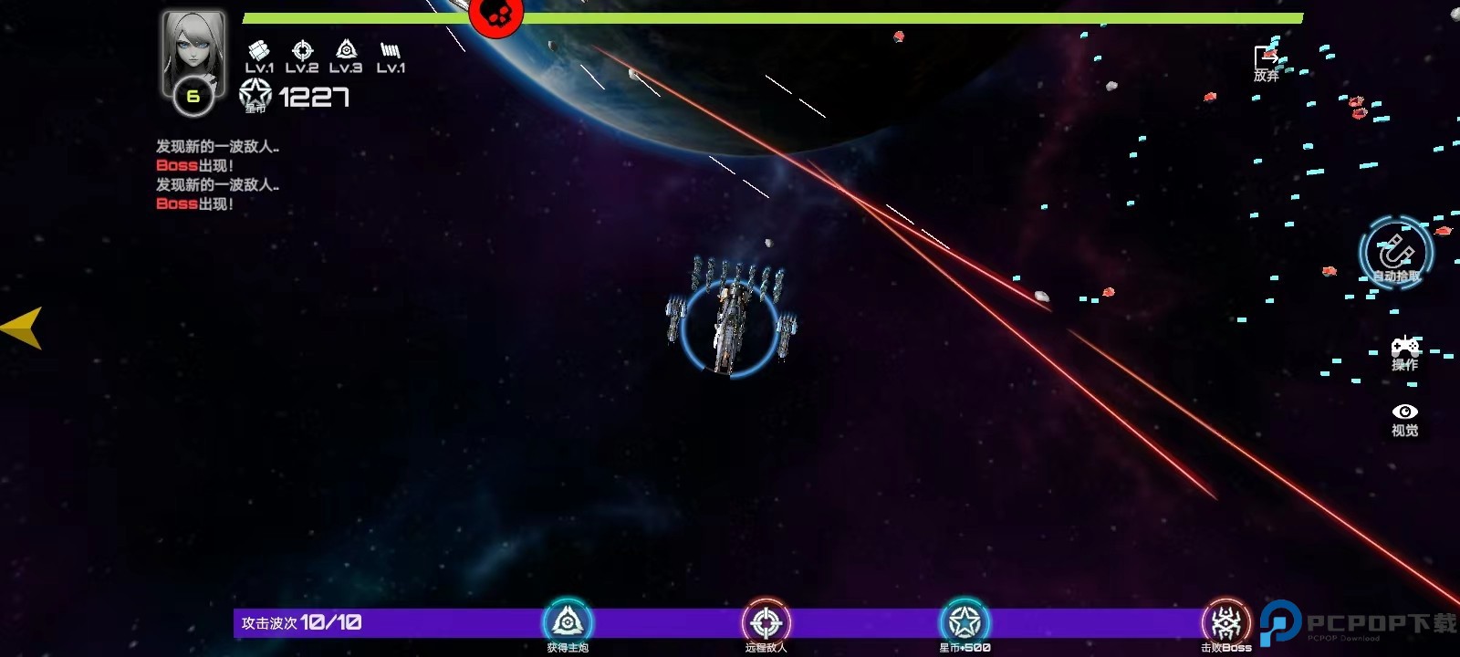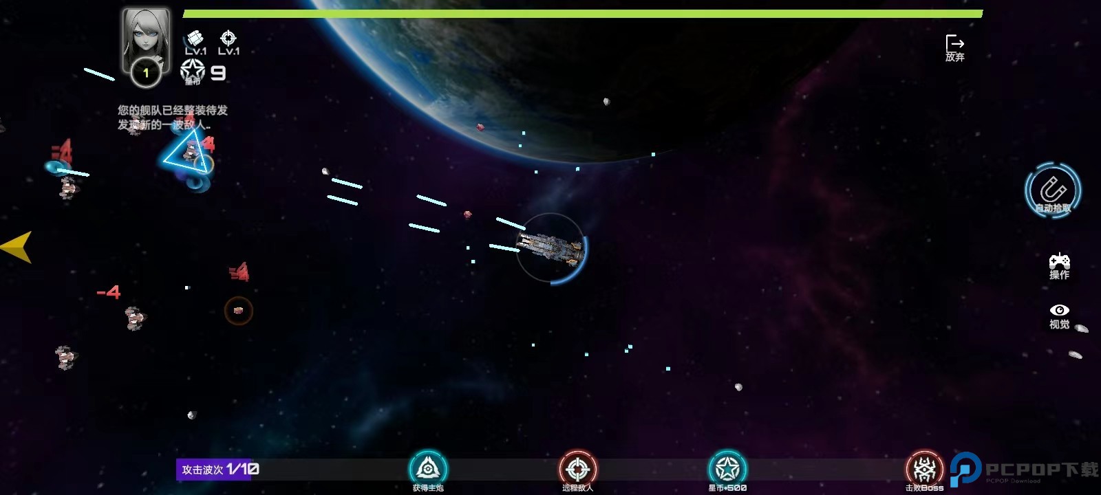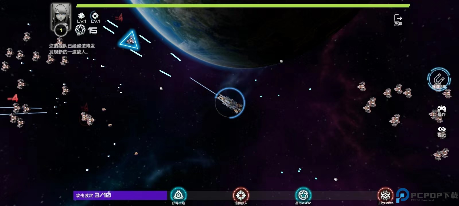3、一共有十波敌人,玩家全部击败之后,就可以成功;进入游戏后,战舰会自动识别敌人进行射击。