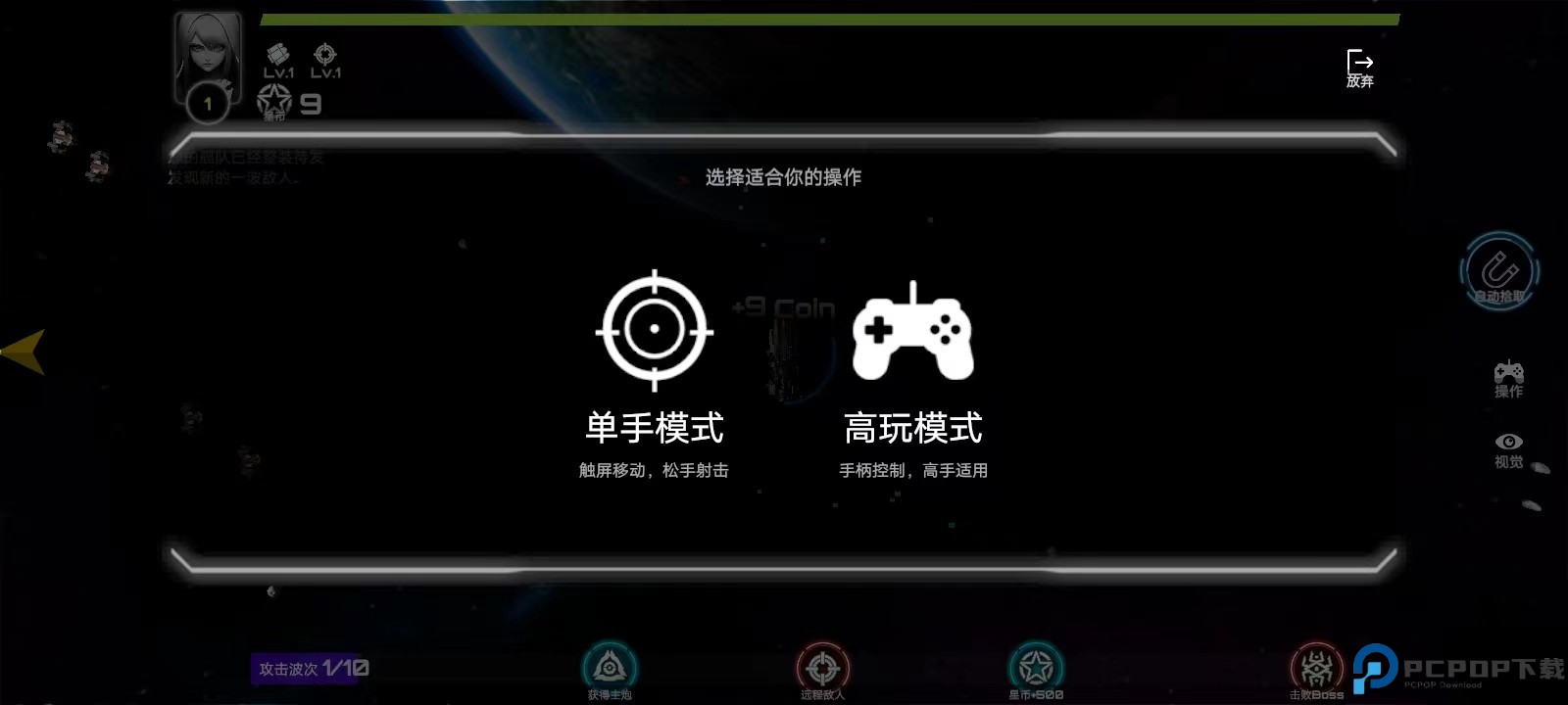 2、选择适合自己的操作,分为单手模式和高玩模式。