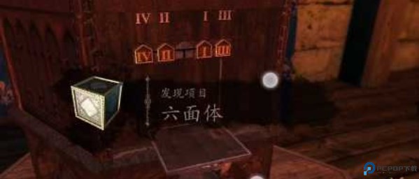 9、旋转画面,击按钮,对准箭头;木块上方可以放入十二面体,下方旋转圆球将缺口对准四角;来到大木块右侧,拿到钥匙(十字头扳手)。