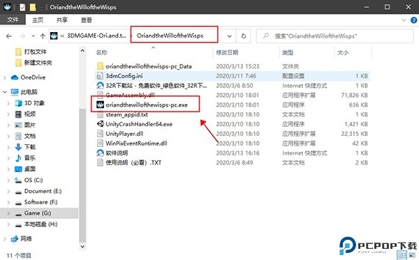 3、在OriandtheWilloftheWisps文件夹中找到oriandthewillofthewisps-pc.exe文件,双击运行即可打开游戏;
