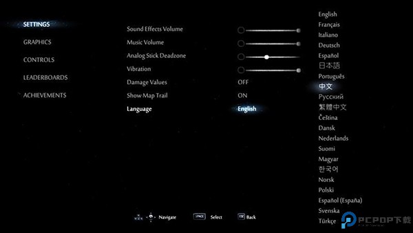 4、进入游戏看到是英文界面,在主菜单点击Options进入设置,选择SETTINGS中的Language即可将语言切换成中文;