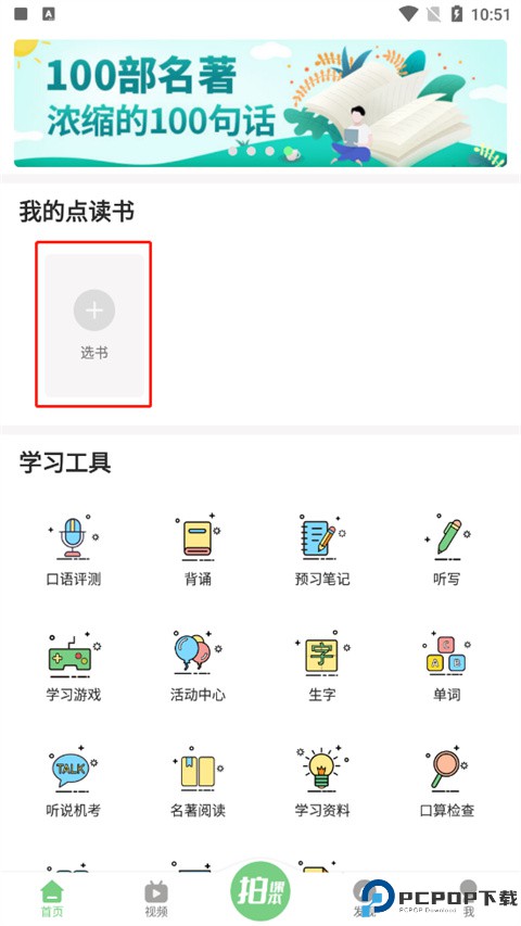 1、双击打开爱点读app,点击选书;