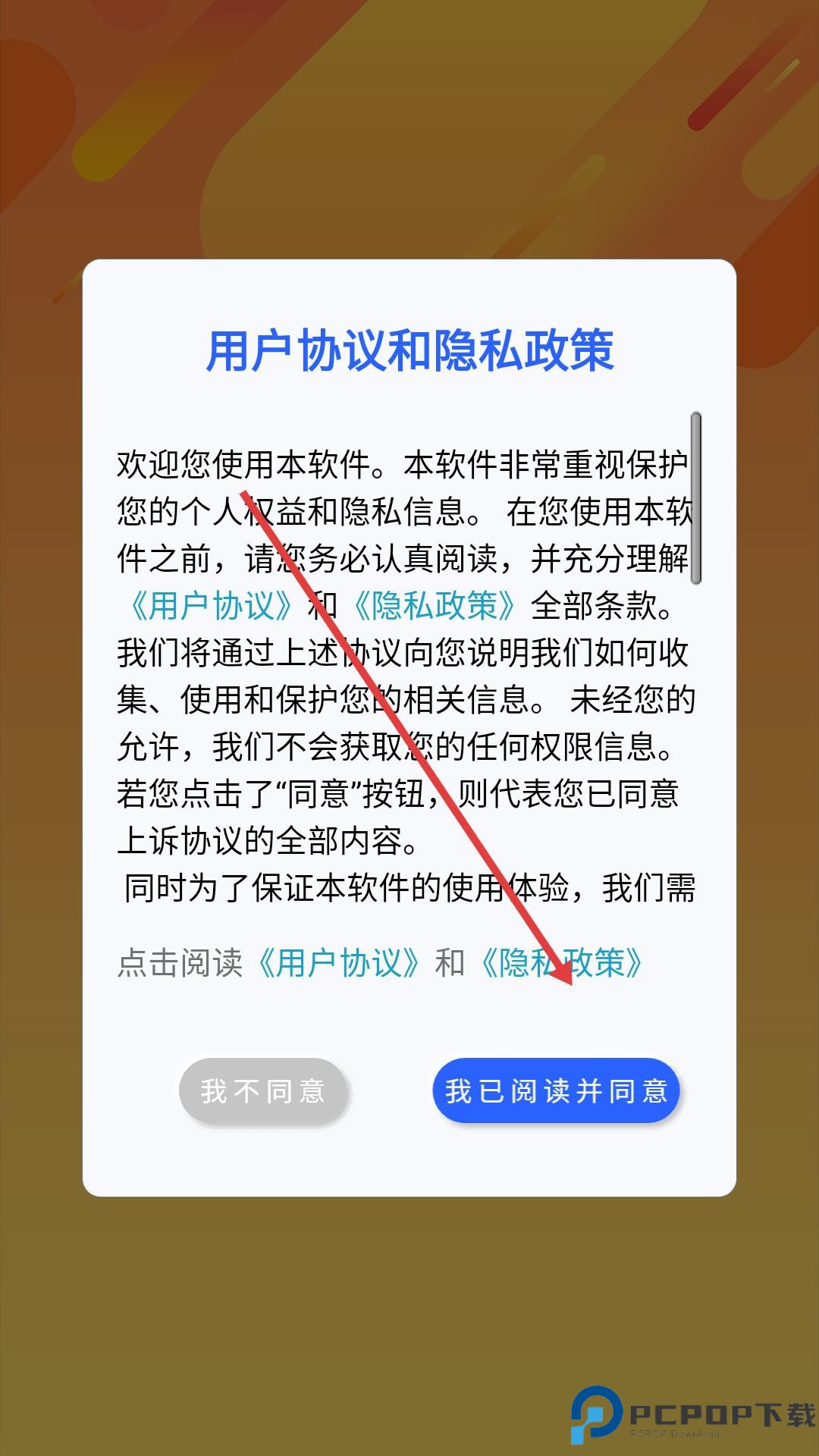 1、下载安装完成后进入,需在用户协议和隐私政策界面点击同意,接受相关条款后才能进入应用。