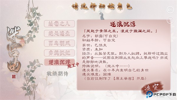 易次元深宫曲旧版以古代宫廷为背景,聚焦后宫妃嫔的视角,采用唯美清新的古风画面,配合丰富的剧情,营造出身临其境的体验。开局时,玩家可自由选择出身身份,无论高贵或平庸,皆由玩家掌控。每一次开局都代表一位女子的一生,面对各异的后宫局势和人生抉择。游戏深刻展现了后宫的风云变幻与命运起伏。