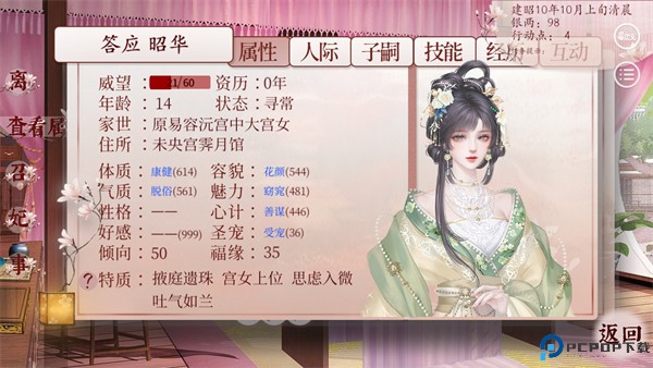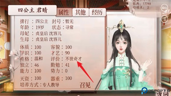 1、玩家进入易次元深宫曲旧版,想要让孩子成为不世奇才,第一步召见她,陪她说话。