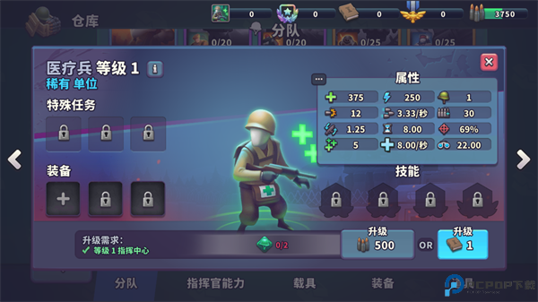 游戏中唯一能帮友方补血的兵种,个人习惯场上要有约3,5隻医护兵