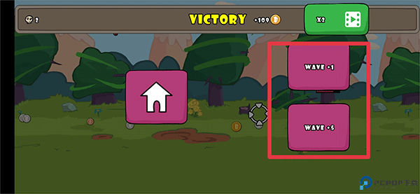 6、胜利后,你可以点击 WAVE+1和WAVE+5来增加游戏中的敌人波数