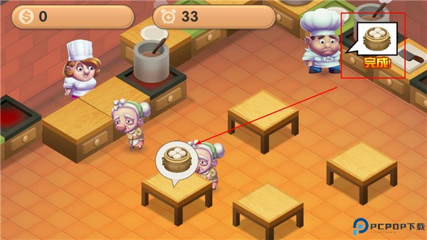 3、顾客等待过程中,点击食物,那边厨师才会开始制作。