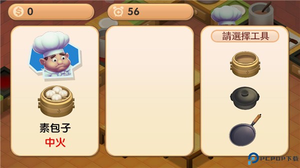 8、点击食材和火候,只有都选择正确才能烹饪成功。