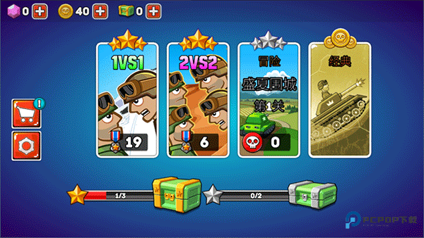 1、打开游戏后,自由选择 1v1 单挑、2v2 组队、冒险闯关或经典模式四种玩法;
