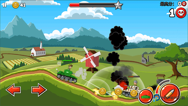 3、左手操控屏幕左侧的虚拟方向键移动坦克,右手点击右下角的发射按钮进行攻击;