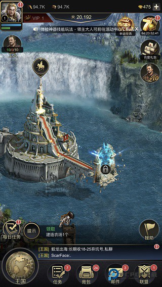 3、每日任务必做,奖励随城堡等级涨;