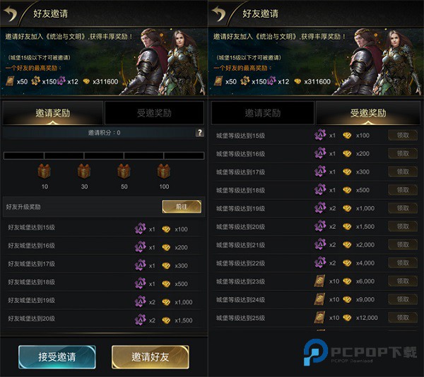 绑定好友关系,送海量金币和英雄碎片。每个账号可绑 10 位好友,一个好友升到 30 级城堡,领 31 万金币、50 张高级招募卡和 150 个 S 级万能碎片,爽快回报。