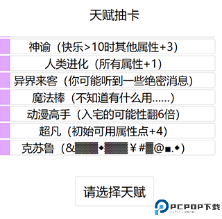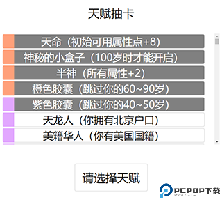 2、【多项属性】:你的人生也会呈现不同的面貌,获得多多的资源,选择合适的天赋,调整各种属性;