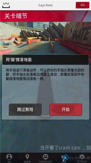 用手指进行滑板动作,可以把你的手指头想像为你的脚,把手指头在滑板边地面上滑动,就像在现实中你脚撑滑地面推动滑板一样。