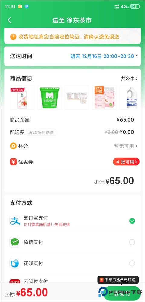 结账的时候很灵活,想用微信、支付宝都行,也接受货到付现金或者刷银行卡,挑自己最习惯、最方便的方式付钱就好。