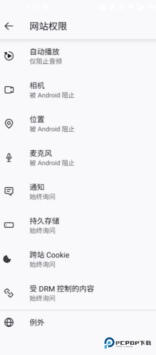 3、在隐私与安全模块访问"站点权限"子系统进行网址访问规则配置