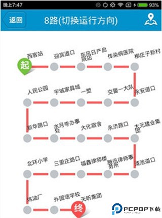 4、切换运行方向后,还可查看详细的起点至终点所经站点信息。