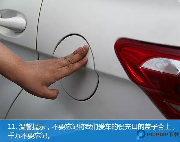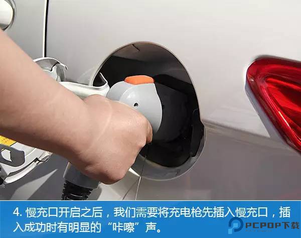 4、将充电插入慢充口,出现咔嗞声即插入成功。