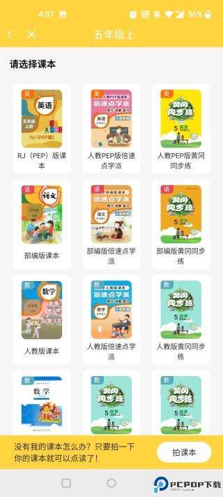 3、在课本列表中找到所需课本或使用拍照功能添加。