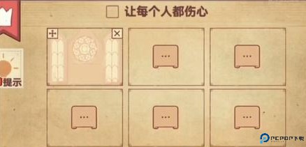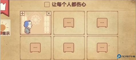 3、玩家将墓地放入第三个框,再将张友志放在墓碑里,然后将陈小梅放在第三个框,陈小梅看到张友志死了心就碎了,如图所示。