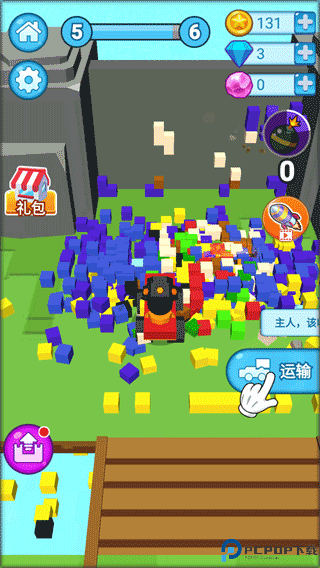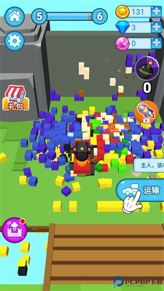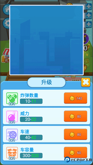 3、通过出售方块资源获得的金币可以用来升级自己的运输工具,提升炸弹数量、威力、车数以及车容量。