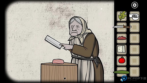 回到茅草屋,将食材放置到案板上,点击老奶奶,可以获得【番茄酱】、【黄瓜片】、【牛肉泥】和【生培根】,将肉类食材放置到锅里,可以做出【汉堡肉】和【培根片】