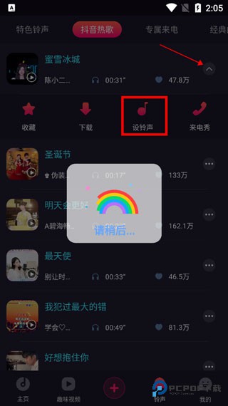 7、在目标铃声操作面板选择设置功能图标,系统将自动完成来电铃声配置。