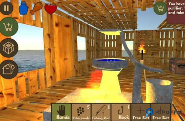 1、生火操作需在已放置的烧烤架、初级净水器或熔炉中进行,向设备内部放入木板即可触发点火机制。初级净水器与熔炉在木板放入后自动生成火焰。烧烤架需额外放置食物才能点火,例如向烧烤架放入鱼类等食材。